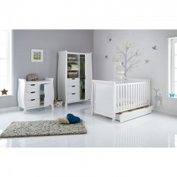 The Obaby Stamford furniture range offers families the perfect combination of style, quality and practicality. The Stamford Classic 3 piece room set consists of the beautiful Stamford Classic cot bed with under drawer, closed changing unit and double wardrobe. All pieces feature the same elegant sle..