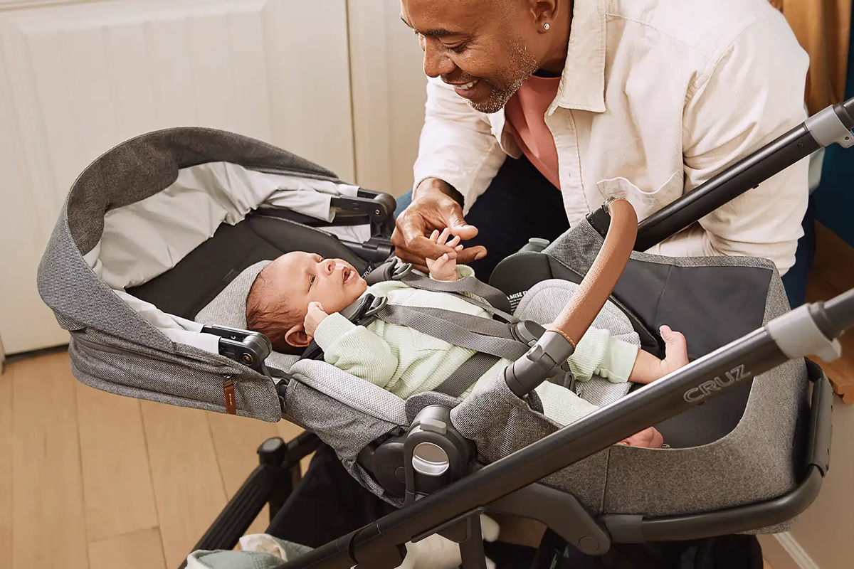 Compact Without Compromise.® The Uppababy Cruz V3 combines a sleek, streamlined design with versatile functionality, offering effortless maneuverability from newborns to toddlers. The perfect solution for families seeking a single, full-size stroller that’s smooth and easy to use, without weighing you down. .